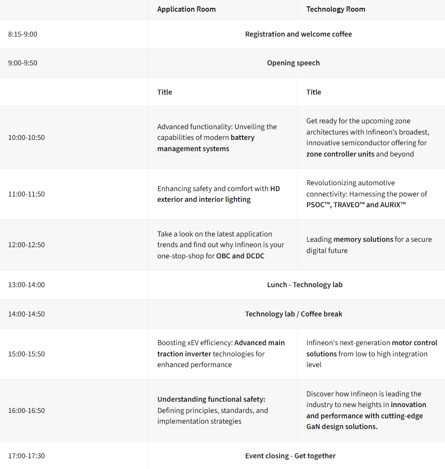 At the Infineon Automotive Technology Day, you’ll gain unparalleled insights into the technologies shaping the future of mobility. Here’s what awaits you: