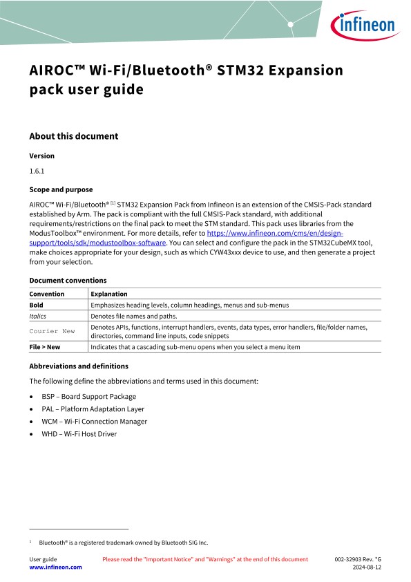 AIROC(TM) WI-FI/BLUETOOTH(R) STM32 EXPANSION PACK USER GUIDE