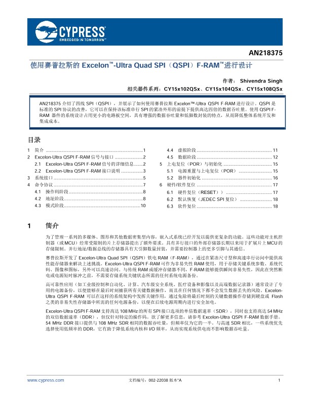 AN218375 - Designing with Infineon Quad SPI (QSPI) F-RAM (Chinese)