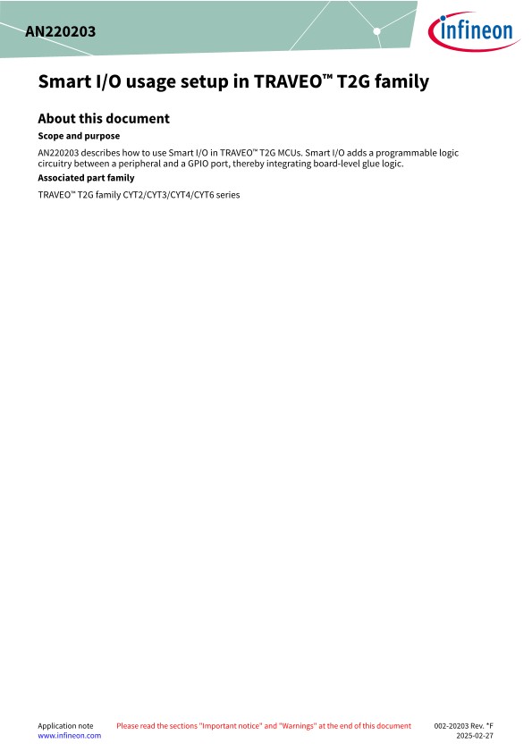 AN220203 - Smart I_O usage setup in TRAVEO T2G family