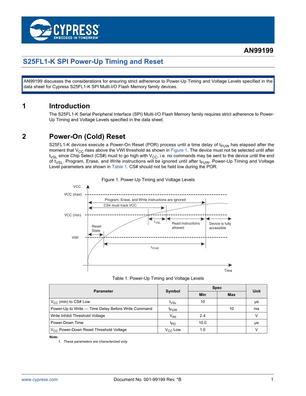 AN99199 S25FL1-K SPI Power-Up Timing and Reset