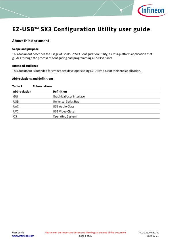 EZ-USB™ SX3 Configuration utility user guide