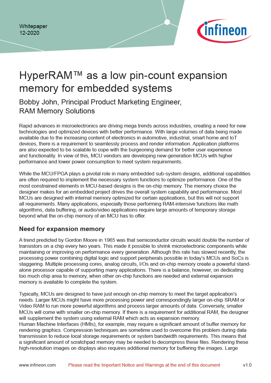 HyperRAM as a low pin-count expansion memory for embedded systems
