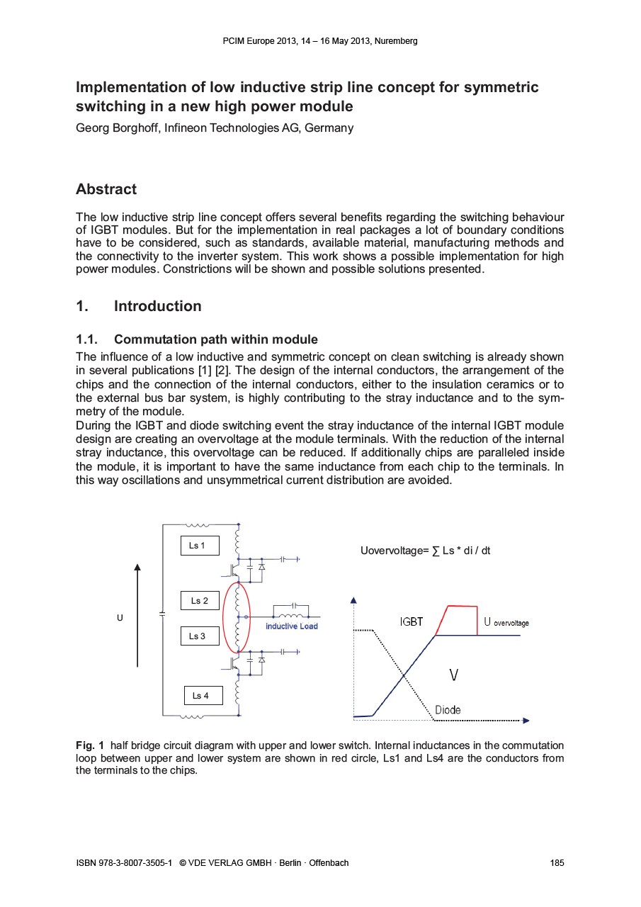 The low inductive strip line concept offers several benefits regarding the switching behavior of IGBT modules. But for the implementation in real packages a lot of boundary conditions have to be considered, such as standards, available material, manufacturing methods and the connectivity to the inverter system. This work shows a possible implementation for high power modules. Constrictions will be shown and possible solutions presented. Also for high power modules with high blocking voltages and high output currents a low inductive design with the strip line concept is possible. Legal regulations and standards create several constraints that do not allow the implementation of an ideal solution. But nevertheless, an IGBT study with a stray inductance below 7 nH at a nominal current of 700 A was realized. For future applications this will enable the use of fast switching devices. With reduced switching losses higher switching frequencies could be implemented.