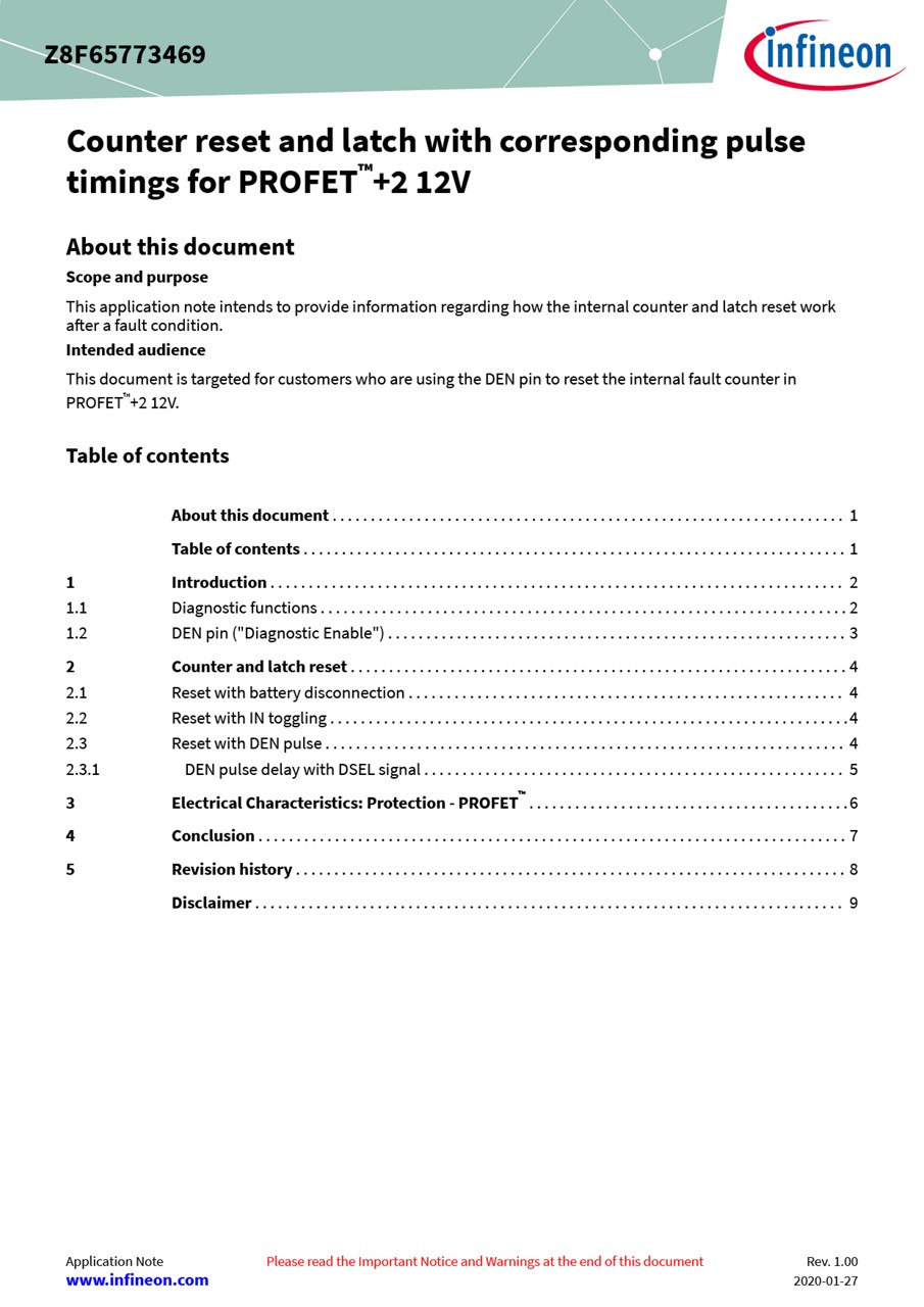 Counter reset and latch with corresponding pulse timings for PROFET™ +2 12V