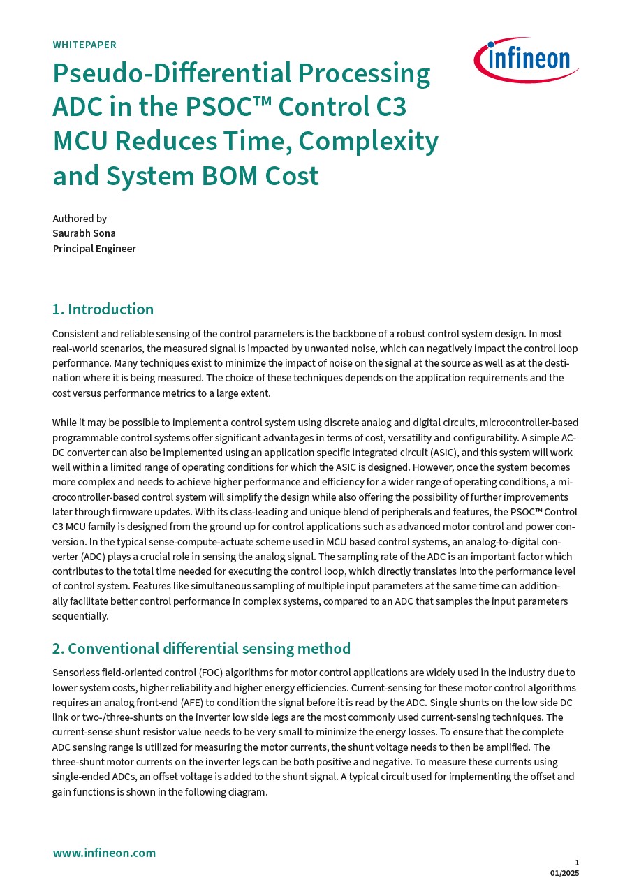 Pseudo-Differential Processing ADC in the PSOC™ Control C3 MCU Reduces Time, Complexity and System BOM Cost