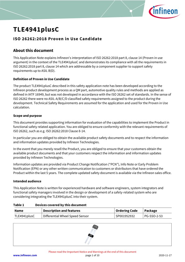 TLE4941plusC ISO 26262:2018 Proven in Use Candidate