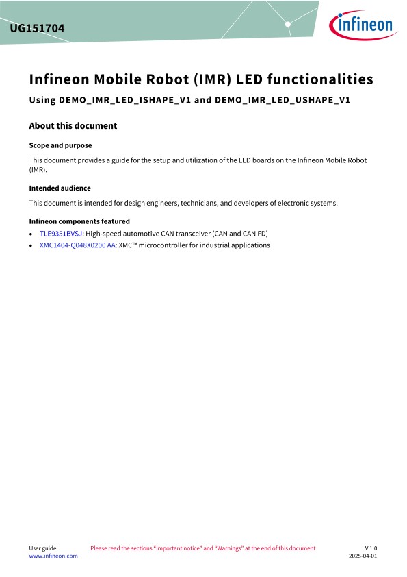Infineon Mobile Robot (IMR) LED functionalities