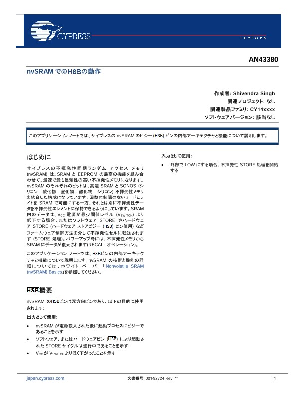 AN43380 HSB Operation in nvSRAMs (Japanese)