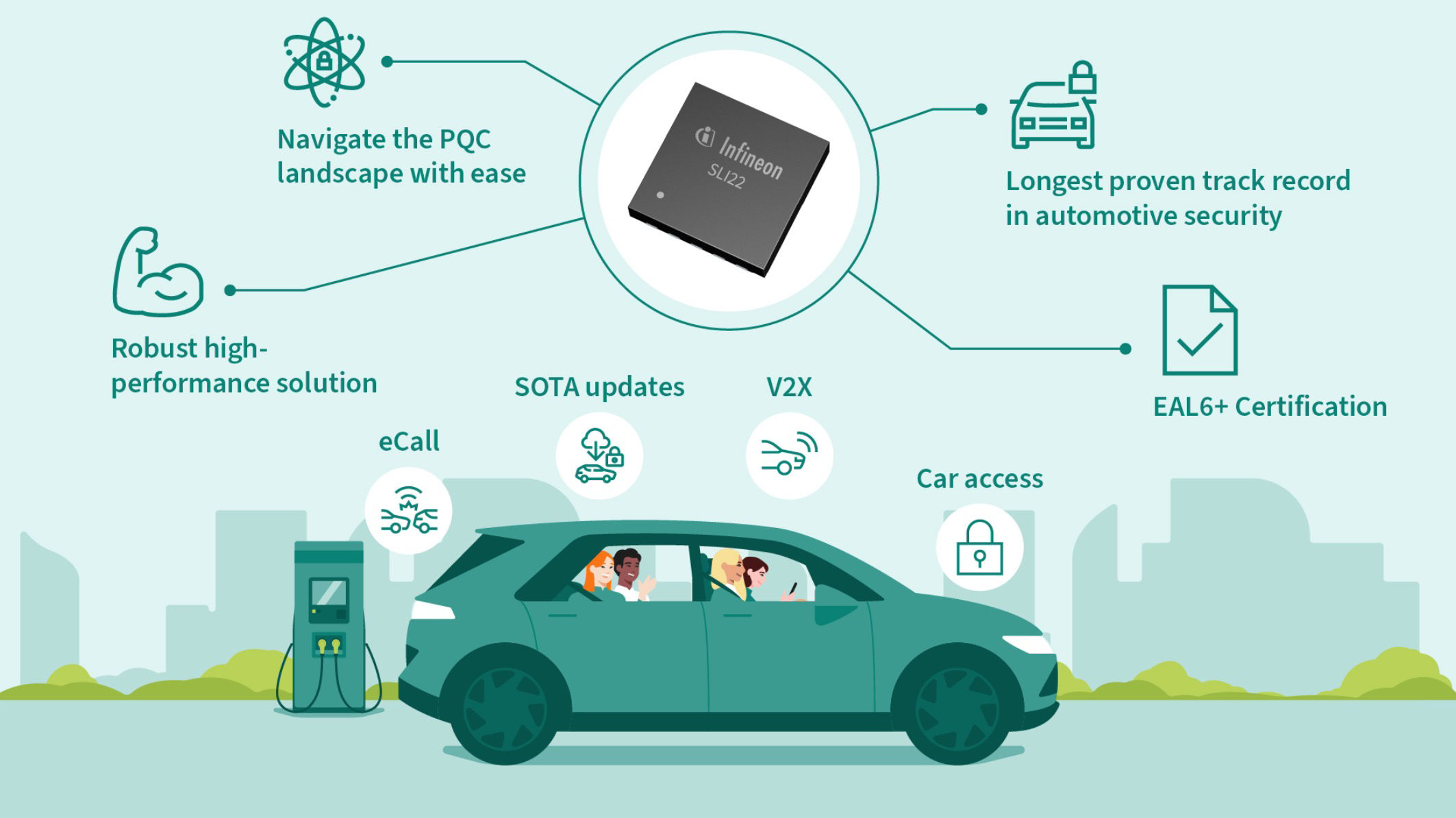 Infineon’s TEGRION™ SLI22 automotive security controller is a robust, high‑performance, PQC‑ready security platform and can be deployed across a wide range of security-critical applications, including eSIM, V2X, and car access.