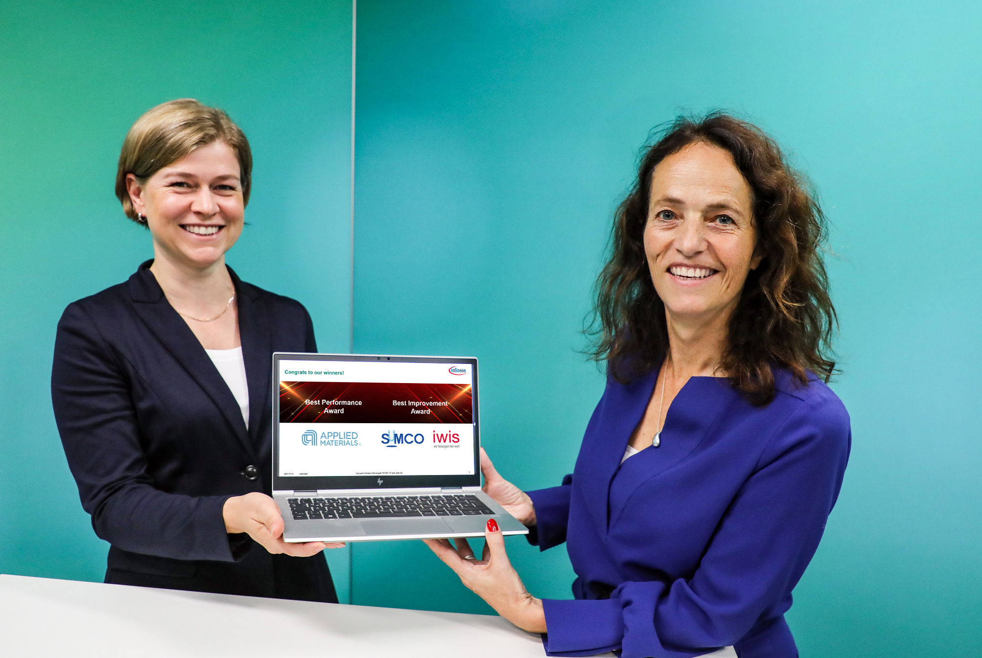 Infineon recognizes suppliers for top environmental performance with Green Awards, left: Corinna Wolf (Infineon Chief Sustainability Officer), right: Angelique van der Burg (Infineon Chief Procurement Officer).