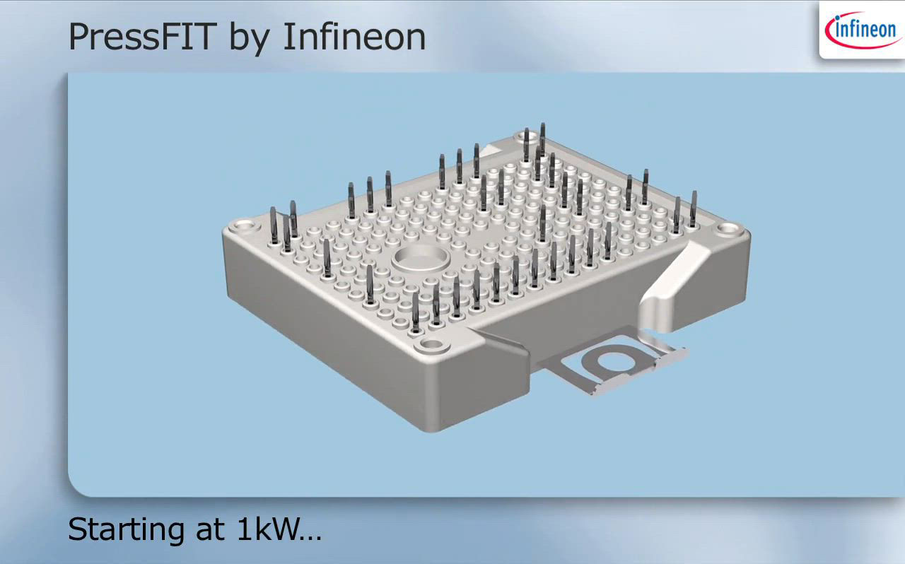 The housing concept of IsoPACK™ modules matches the 62 mm IGBT housing. Threaded power terminals for connecting leads ensure secure connections to the module and are able to carry high currents. The isolated copper baseplate leads to good thermal dissipation.