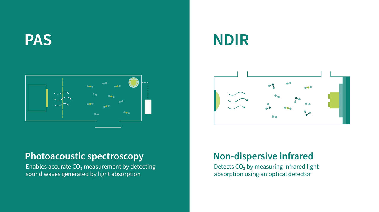 - Photoacoustic spectroscopy (PAS): Measures CO2 levels by using sound waves