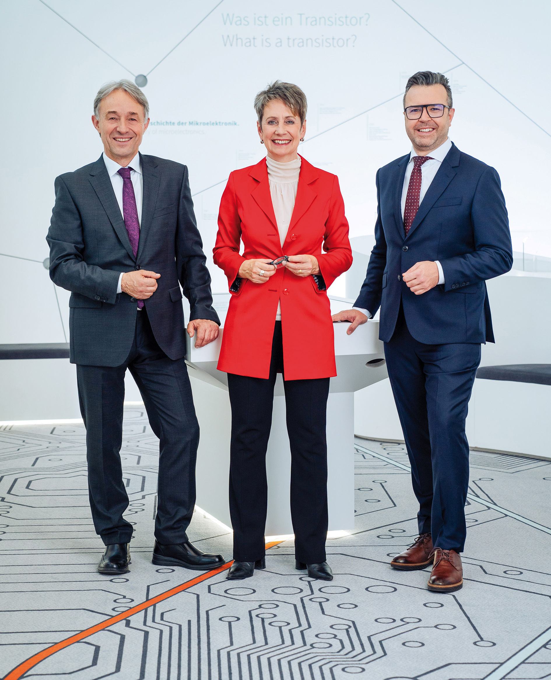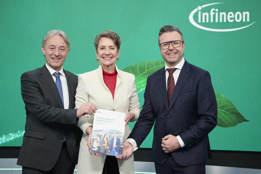 From left to right: Thomas Reisinger, Board Member Operations Infineon Technologies Austria AG; Sabine Herlitschka, CEO Infineon Technologies Austria AG; Jörg Eisenschmied, CFO Infineon Technologies Austria AG